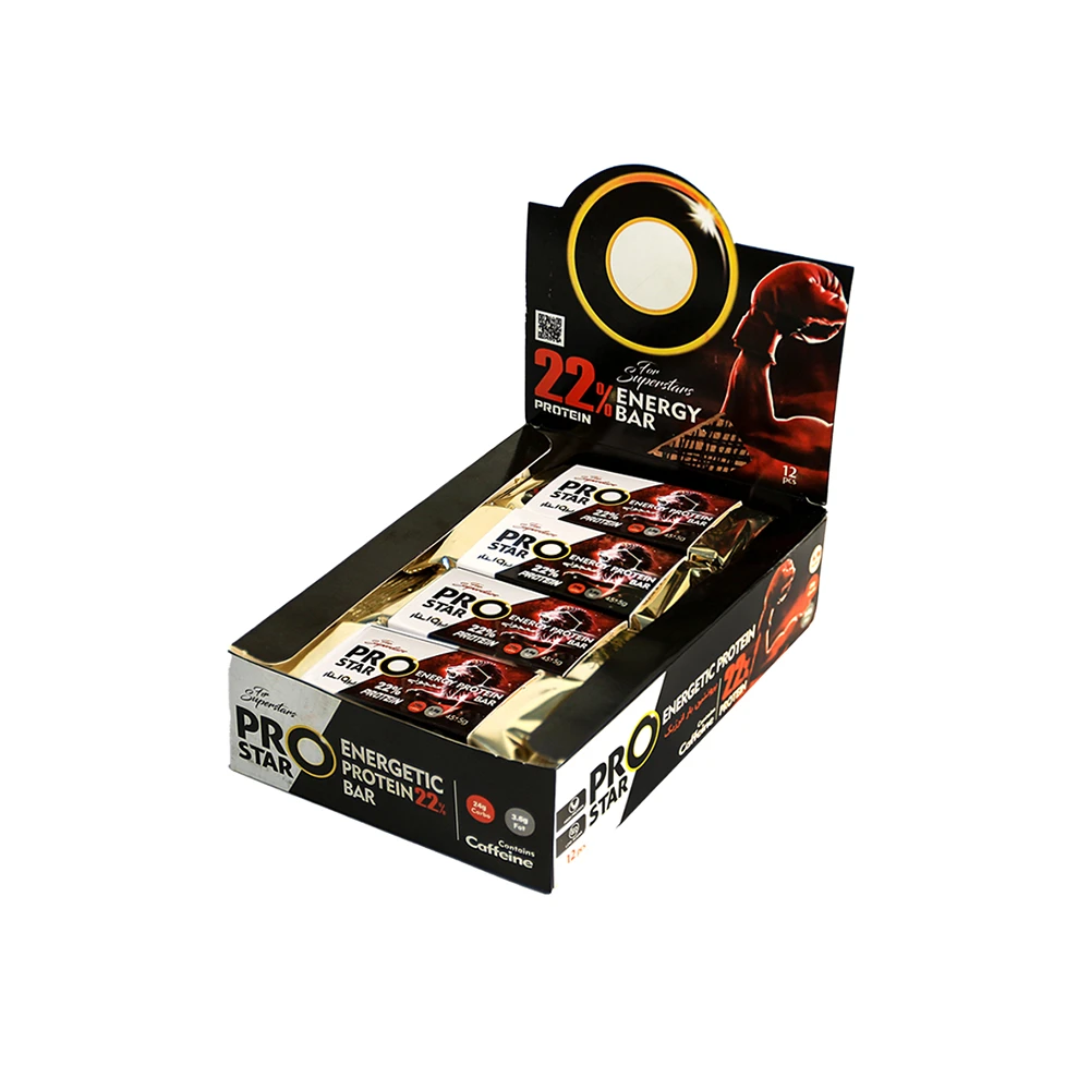 پروتئین بار انرژیتیک پرواستار یک محصول مغذی و پرانرژی است که شامل ترکیباتی چون ارده کنجد، شیره انگور، خمیر خرما، کافئین، دانه چیا، پروتئین ایزوله وی (WPI)، پروتئین شیر (MPC)، آلبومین با 80 درصد پروتئین، پروتئین ایزوله سویا، جوی دوسر، کره بادام زمینی، لپه مغزهای خوراکی (پسته، بادام زمینی، کنجد)، و تخم خرفه می‌باشد. این ترکیب منحصر به فرد به شما کمک می‌کند تا به راحتی انرژی مورد نیاز بدن را تامین کرده و عملکرد بهتری در تمرینات ورزشی و فعالیت‌های روزانه خود داشته باشید.